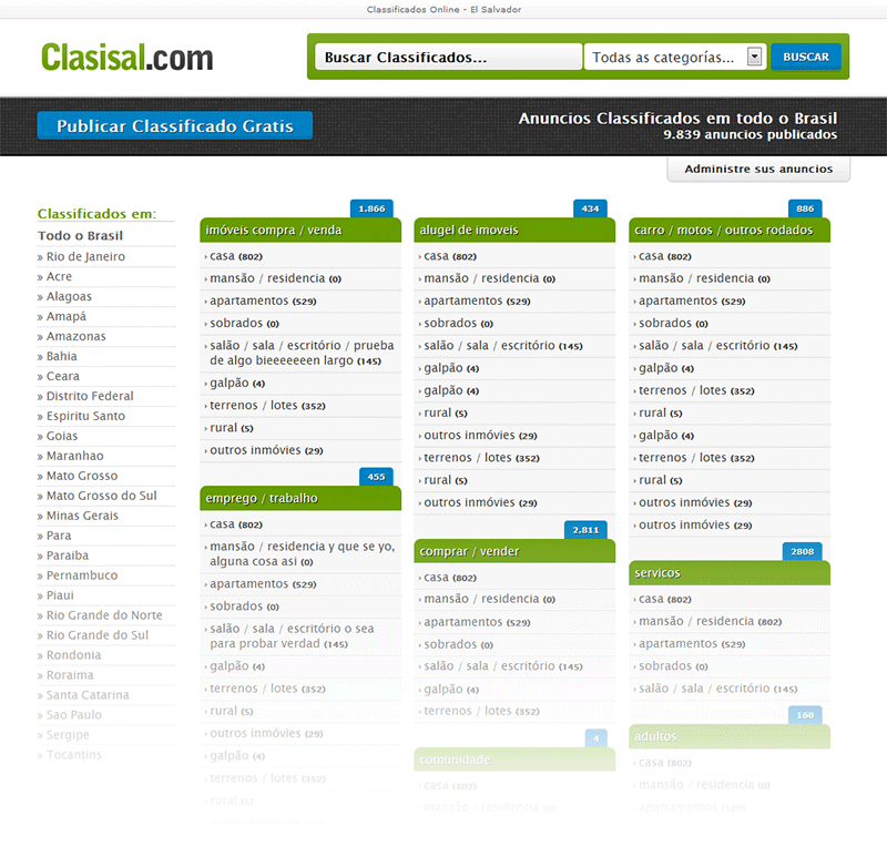 Después de un cambio de rumbo terminamos desarrollando un sitio de clasificados tradicional: cargar anuncios propios, administrarlos, etc. Funcionó bastante bien. Me encontraba desarrollando una versión responsive para adaptar el sitio a la creciente demanda del mercado, pero en medio de ese proceso el sitio se vendió, y no pudo ser. Esta es la última versión en la que trabajé, una adaptación para El Salvador.
